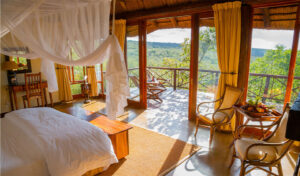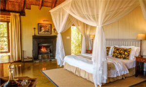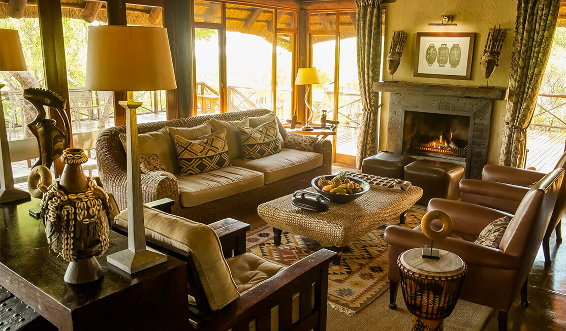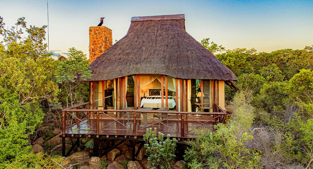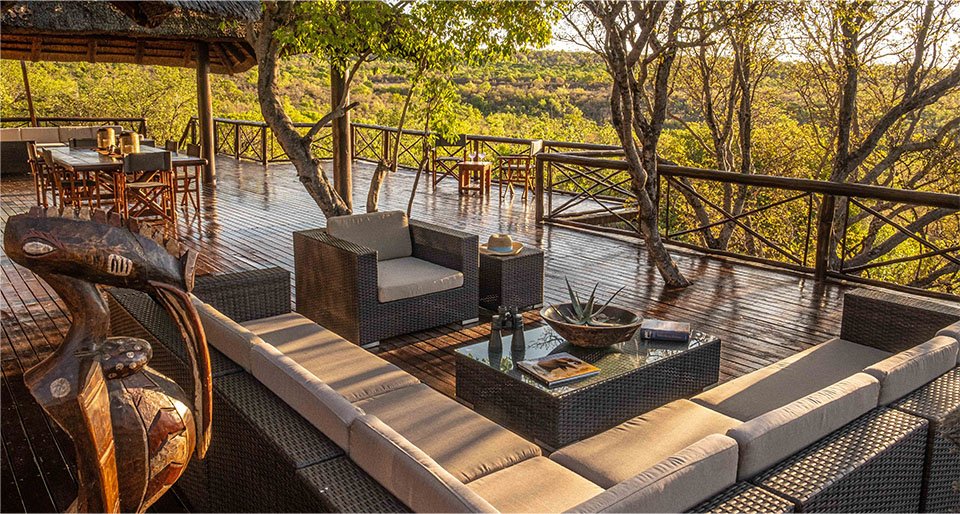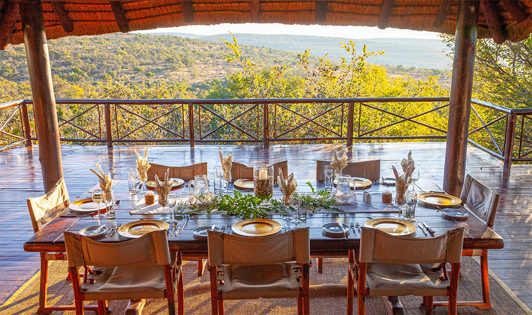 Located at the top of a hill, the lodge offers spectacular views of the bush. The 5 luxury chalets offer panoramic views of the valley, leading out to a private deck.